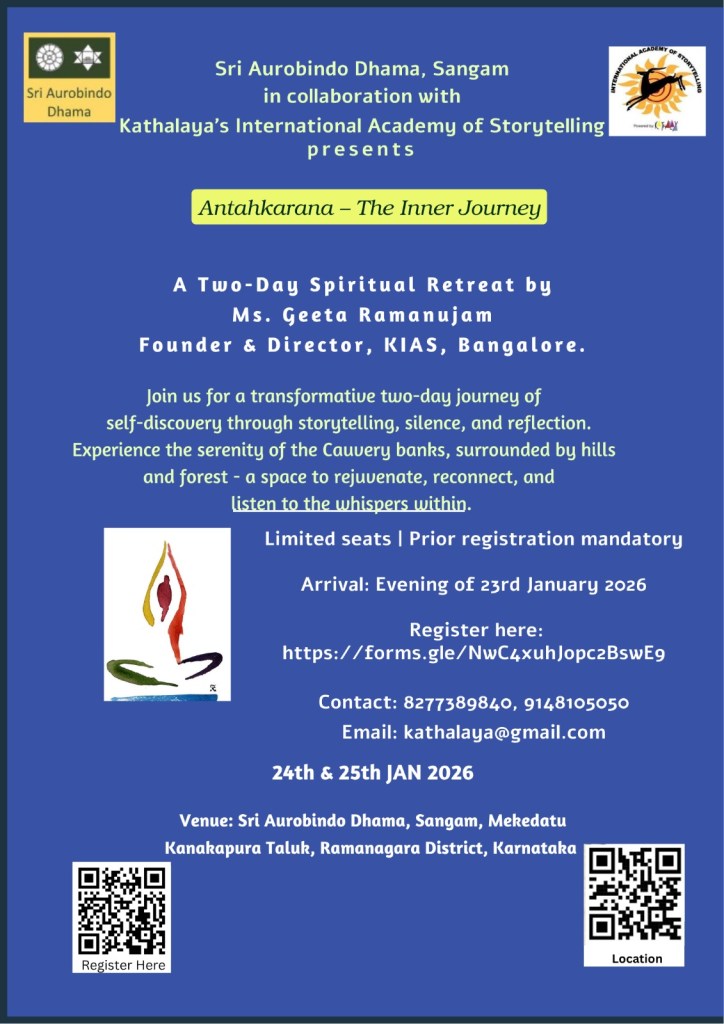 Venue: Sri Aurobindo Dhama Sangama, Mekedatu, Kanakpura Taluka, Ramnagara dist, Karnataka – 562117 https://maps.app.goo.gl/zWpX2uRGvaehhV7M8?g_st=aw